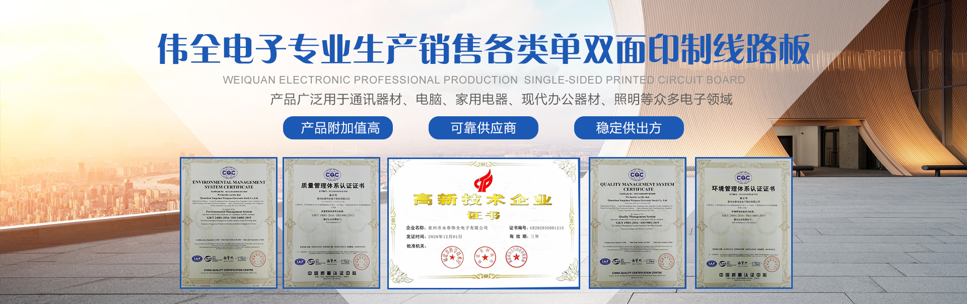 泉州永春偉全電子股份有限公司是一家合資企業(yè)。創(chuàng)辦于2011年,專業(yè)生產(chǎn)各類單面印制線路板,是福建省專業(yè)生產(chǎn)印制線路板的主要廠家,公司坐落在泉州市永春縣桃城鎮(zhèn)留安開發(fā)區(qū)添福工業(yè)園,占地面積達10多畝,交通方便。公司現(xiàn)有員工80多人,總投資3000多萬元人民幣,年生產(chǎn)能力逾20萬平方米。